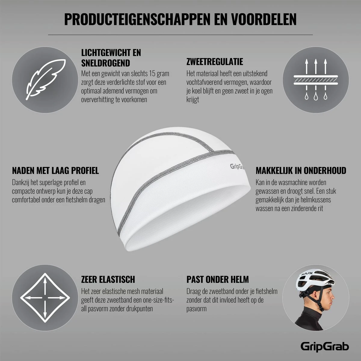 - Leveringsomvang: 1 x GripGrab UPF 50+-zomerfietsmuts voor onder de helm.