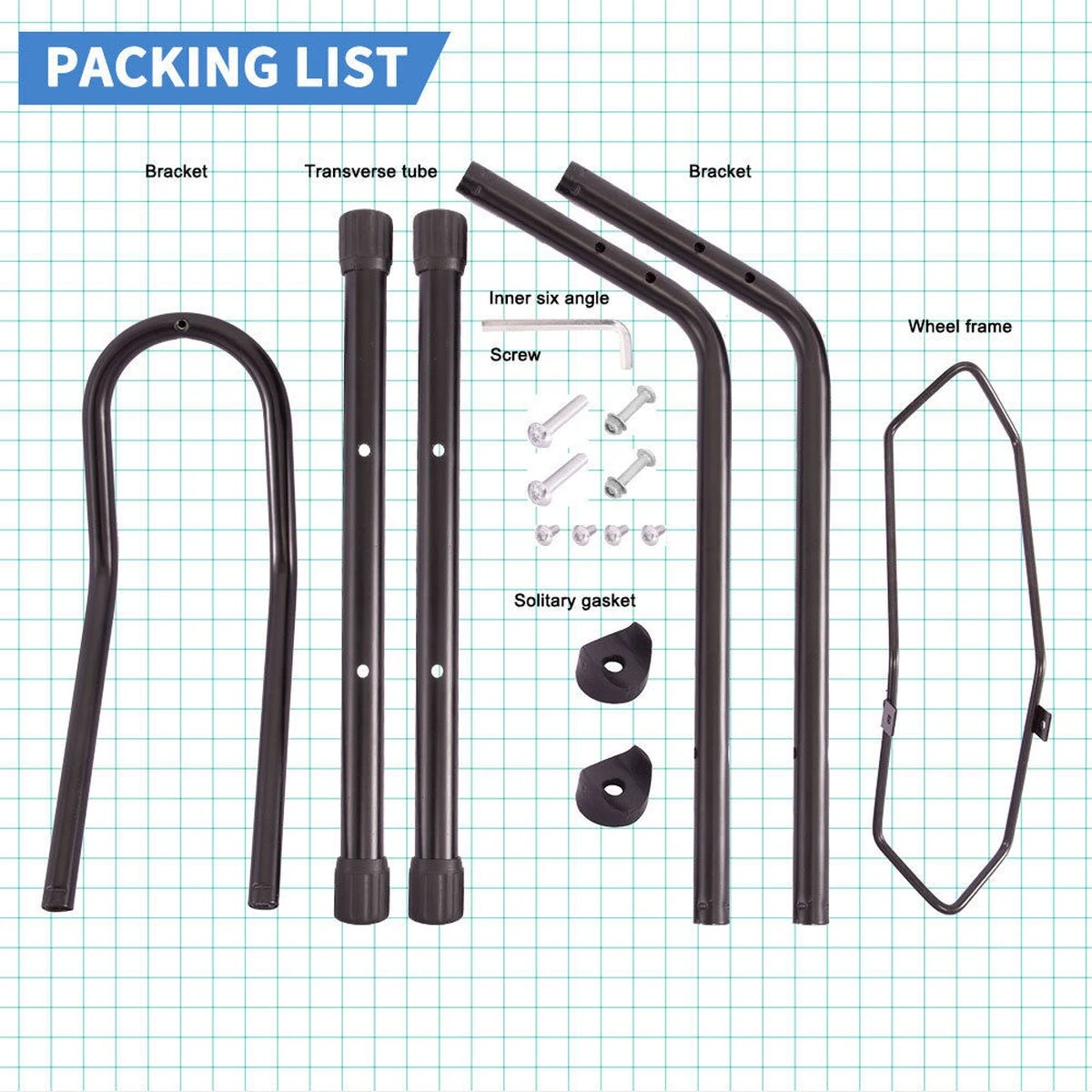 Fietsrek om uw fiets met voor of achterwiel in te stallen.