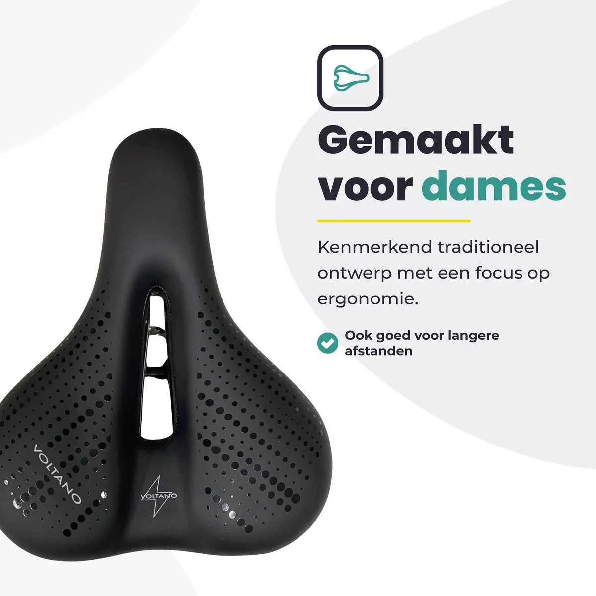 Voltano Dames Fietszadel – Zwart – Uitsparing – Waterdicht – Elastomeer Vering